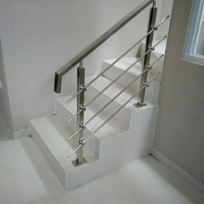Model railing tangga stainless steel. Pagar tangga stainless steel memiliki kekuatan yang lebih tinggi daripada aluminium dan dapat dijadikan berbagai bentuk furnitur dan peralatan rumah tangga. Meski harga tangga stainless steel memadai mahal, mutu dan kesan elegannya tidak kudu diragukan. Terlebih lagi desain stenlis mewah dan tersedia berbagai macam model railing stainless yang bagus, menarik, dan inovatif. Tangga dengan pagar yang bagus juga akan mempunyai kesan dan juga makna yang bagus bagi keluarga. Beli railing tangga stainless terbaik harga murah july 2021 terbaru di tokopedia! Model railing tangga minimalis kaca. Komunikasikan apa saja jenis dan model orderan anda kepada kami, dan segera kami survey lalu nego sampai jadi. Memiliki karakteristik kuat dan mudah dibentuk sehingga bisa disesuikan dengan model yang diinginkan. Tidak sedikit yang sudi merogoh kocek lebih didalam untuk menempatkan tipe railing ini. Stainless yang digunakan adalah hollow 4×6 stainless 304, beton stainless 304, plat stainless 304 dan kaca tempered 8mm. Jika stainless model hollow bulat sudah biasa, gunakan stainless bulat untuk pengaman. Sementara, di bagian pegangan memanjang, gunakan stainless model nako.